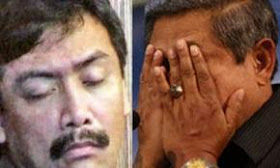 Dalam foto tersebut tampak sosok si Menteri Pertama yang mengundurkan diri karena kasus koruspi, Andi Mallarangeng sedang merem dengan kesan lemah lemas tak berdaya, sedang berada di sebelahnya SBY tengah menutup mata terkesan malu karena ulah menterinya... :) Hehee,, ternyata begini ya kalau pejabat publik menunjukkan "kulucuannya" cukup menghibur, paling tidak bisa bikin LM tersenyum dari pada melihat sosok aslinya Andi Mallarangeng ketika sedang menjabat yang gagah dan arogan.